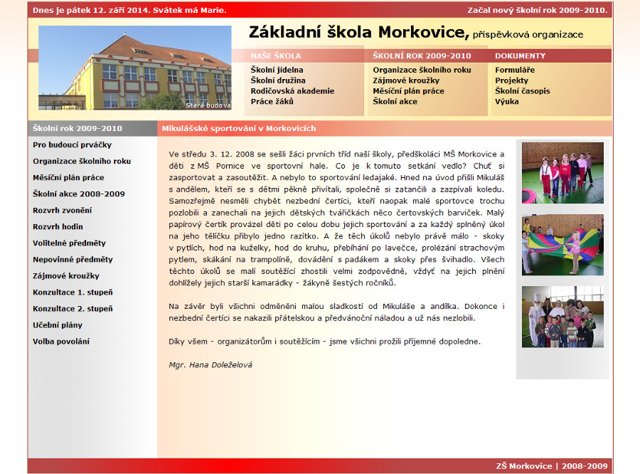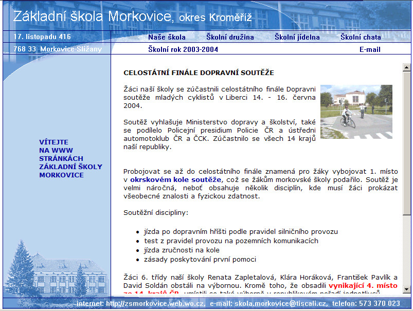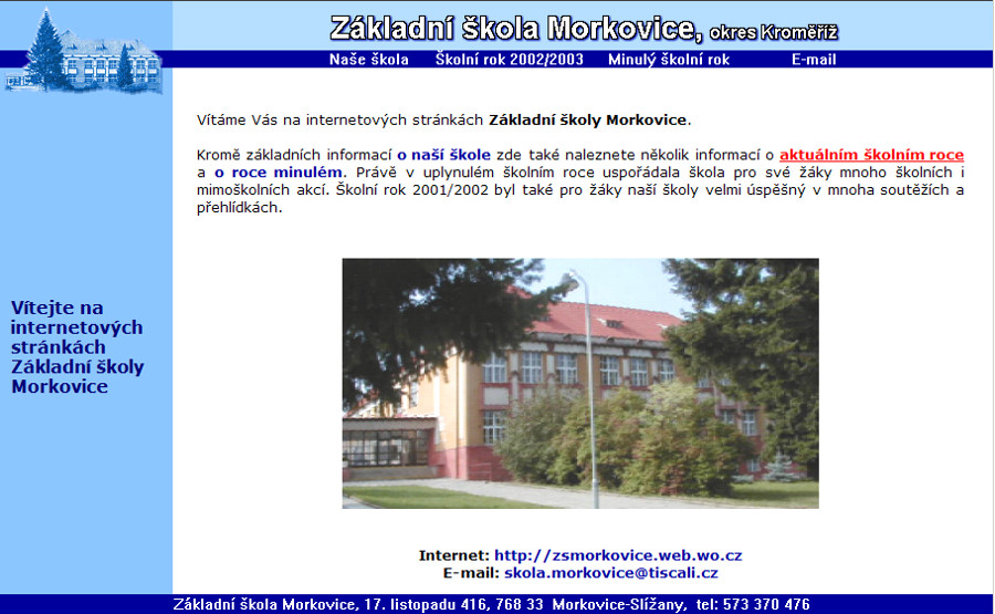 Ano, i naše internetová stránka má svou historii. Z původních pár (z dnešního pohledu ničím nezajímavých) stránek se naše webová prezentace rozrostla na několik desítek stran plných informací a fotografií ze života naší školy.
