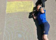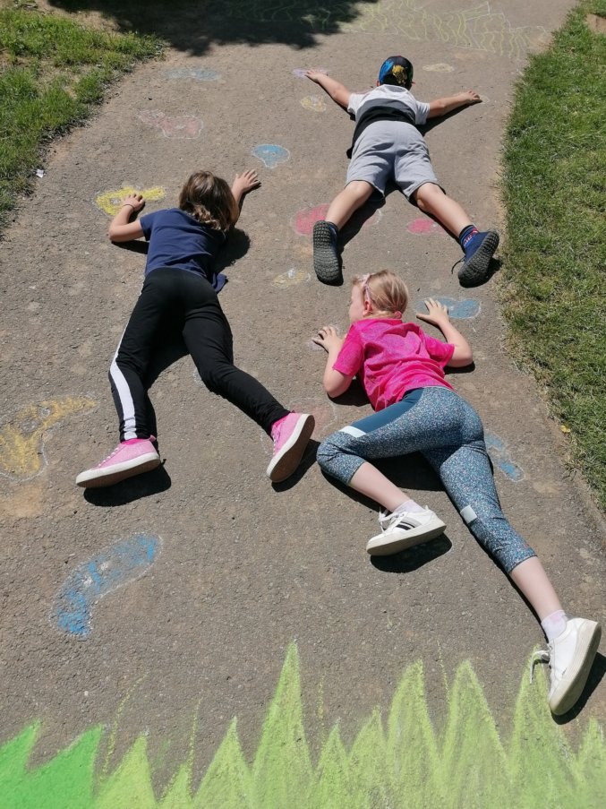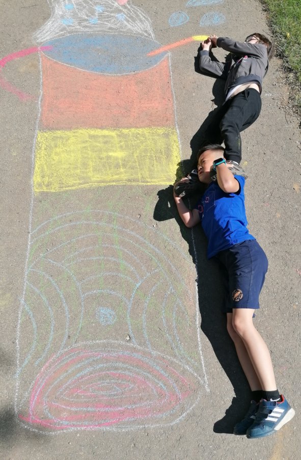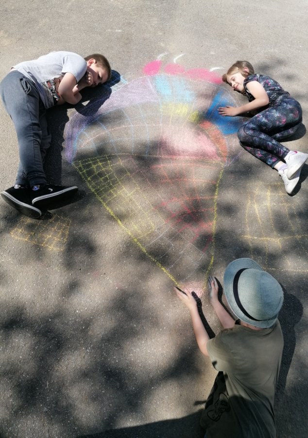 Žáci 2.B strávili VV tvořením obrazů, kterých se stali poté součástí. Jejich úkolem bylo nakreslit dílo, do kterého se budou moci zakomponovat. Důležitá byla spolupráce, kompozice a hlavně zapojení fantazie, při vymýšlení tématu. Vznikla krásná díla - fotbalisté, horolezci, pojídači zmrzliny, jezdci na plameňácích a spousta dalších. Všichni pracovali se zápalem a výuku si velmi užili.