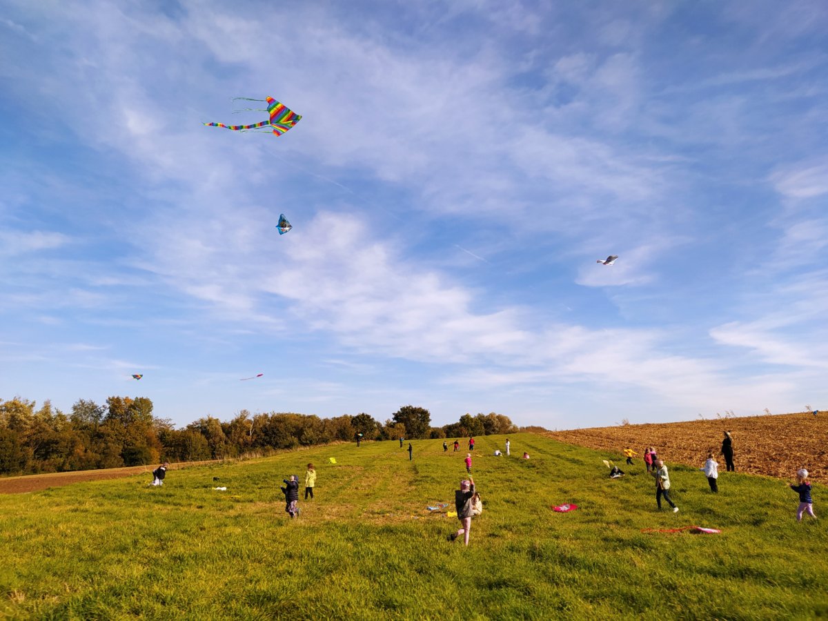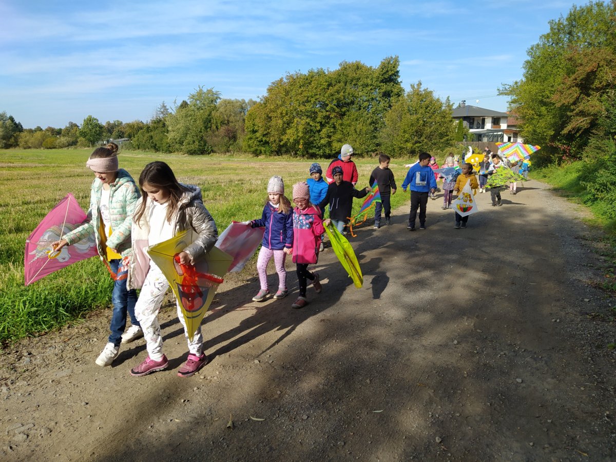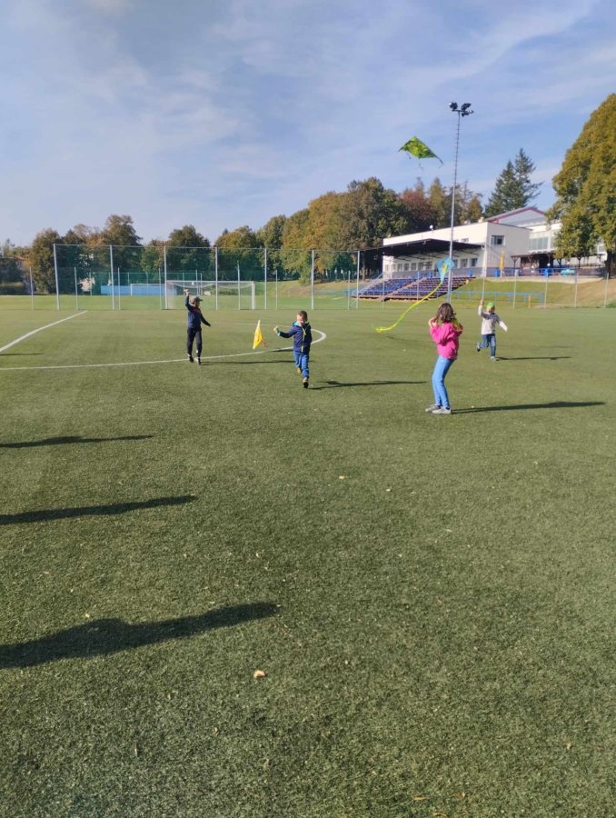 Ve středu 18. října jsme vyrazili pouštět draky. Pro velký počet dětí jsme se rozdělili na dvě skupiny. První pouštěla na hřišti s umělým trávníkem a druhá na nedalekém poli.