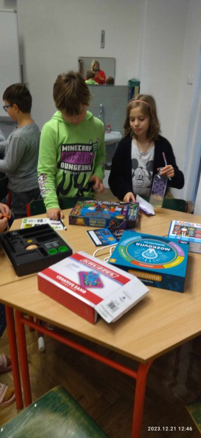Na konci prosince chodívá i do družiny Ježíšek. V některých odděleních už naděloval, přinesl krásné dárky a vykouzlil úsměvy dětí na tvářích. Do prvního oddělení ještě nepřišel, možná čeká, až budou všechny děti hodné. Možná budou o to více překvapené po prázdninách.
