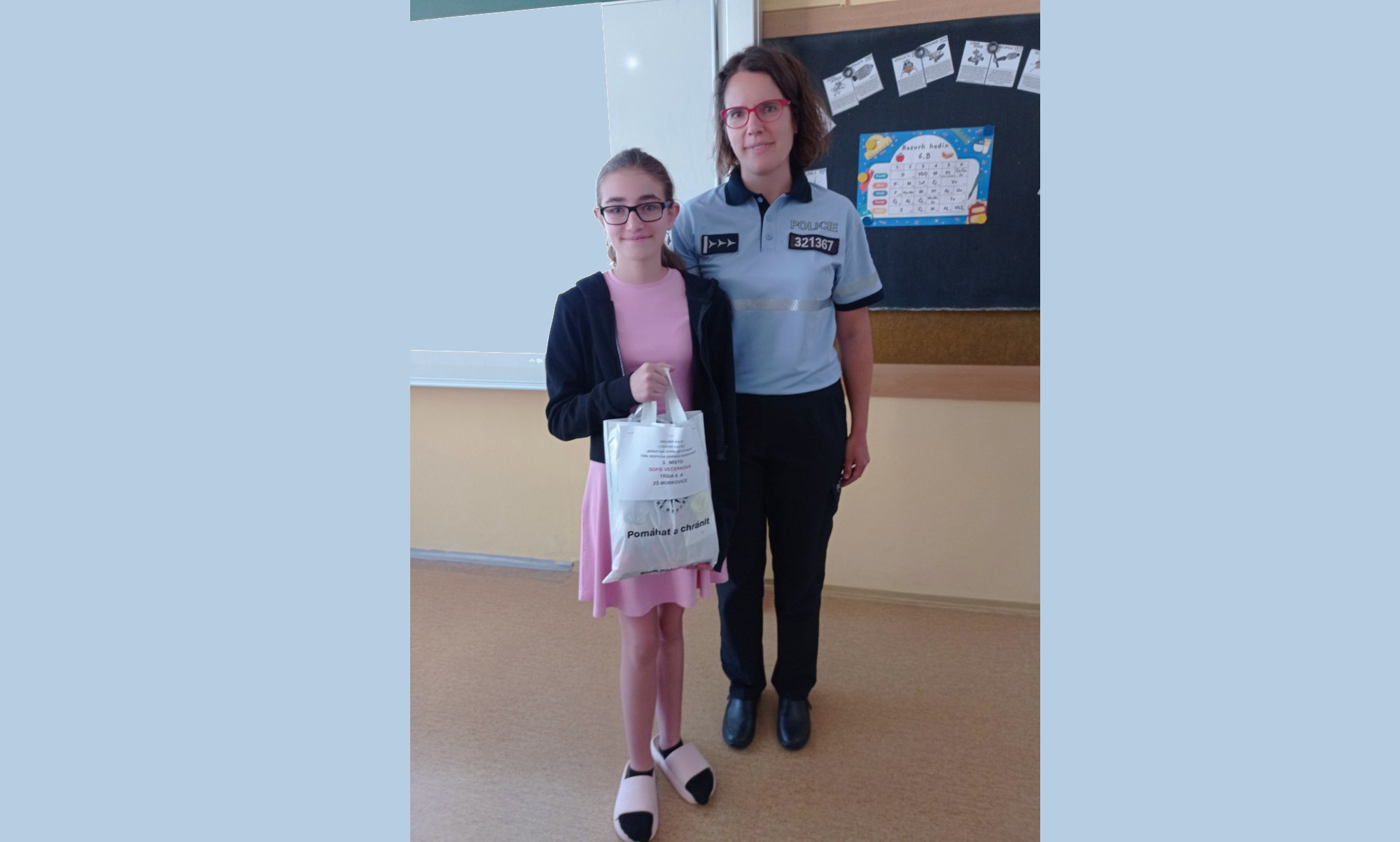 V semináři z českého jazyka jsme se s žáky 6. a 7. tříd zapojili do literární soutěže Bezpečná doprava budoucnosti v rámci projektu Markétina dopravní výchova. Úkolem žáků bylo napsat zamyšlení, jak by mohla vypadat doprava v budoucnosti a zda takové cestování bude bezpečné. Žáci se tohoto úkolu zhostili zodpovědně. Nejvydařenější texty byly posléze zaslány do soutěže, které se zúčastnilo 27 škol a hodnoceno bylo přes 400 příspěvků. Se svou prací v soutěži obstála Sofie Večerková z 6.A, která se umístila na 3. místě v krajském kole této soutěže a pogratulovat a předat cenu ji přijela paní policistka až ze Zlína. Sofie se svou prací automaticky postupuje do kola celostátního, které se uskuteční v červnu. Sofii gratulujeme a budeme jí držet palce.
