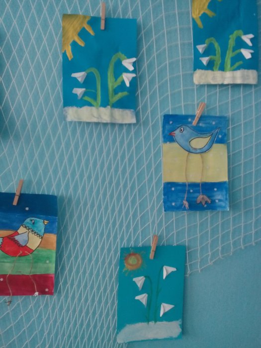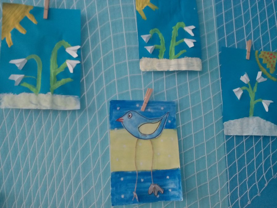 Ve školním klubu se tedy vůbec nenudíme. Malovali jsme sněhuláky a lední medvědy. Zimu jsme zakončili sněžítky. Ale blíží se nám jaro, ptáčci zpívají a zem, už se probouzí a s ní i naše nástěnka. Je plná sněženek, ptáčků, motýlků. Dokonce jsme si upletli i chobotnice.