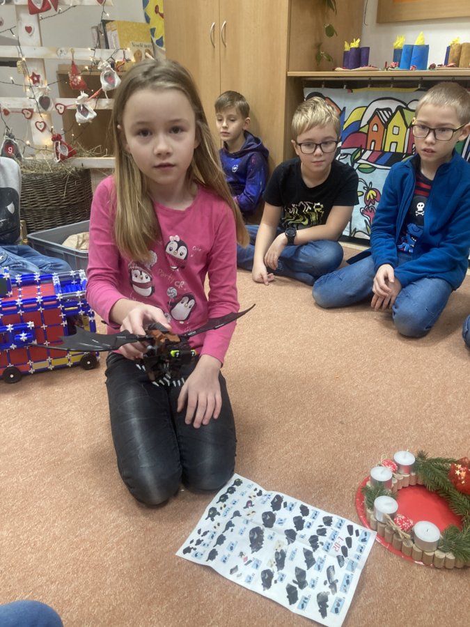 Co to je? Nejsou to hmotné dárky, ale dárky v podobě ukázky toho, kdo a jaký jsem. Žáci si vylosovali na každý den v adventním kalendáři jedno nebo dvě jména spolužáků, kteří na druhý den ve třídě předvedli, co umí, co je baví, s čím si rádi hrají… Cílem bylo dozvědět se o svých spolužácích něco nového, co jsme o nich třeba ještě nevěděli, ale také zvyšovat sebedůvěru a zdravé sebevědomí jednotlivých žáků. Posilovali jsme tím a zlepšovali vztahy ve třídě, protože jsme si za ukázky tleskali a děkovali. Všichni byli moc šikovní a dočkali jsme se nejednoho překvapení. Máme mezi sebou například muzikanty - dva houslisty, bubeníka, klarinetistu, ale i chovatele morčátek, fotbalistu, skokana přes švihadlo, hasiče, programátora, cvičitelku hobby horsingu, malíře a sochaře, děti milující své hračky, stavebnice, knihy…