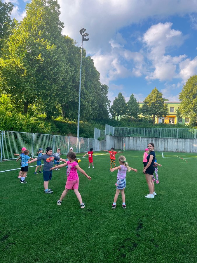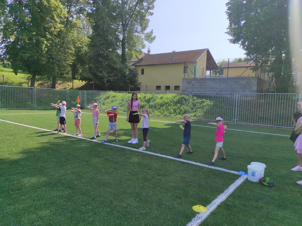 Dne 19. června se na naší škole uskutečnila sportovní olympiáda pro mateřskou školku z Morkovic a z Pornic. Žáci devátých tříd pomohli zorganizovat tuto akci. Bylo zde dohromady pět stanovišť. Skok do dálky (do písku), štafeta, hod míčkem, přetahování lanem a běh. Na každém stanovišti jsme pomáhali malým sportovcům. Holky také fotily nás i školkáčky při aktivitách. Myslím si, že si to všichni moc užili a dobře si zasportovali. Domů si každý odnesl medaili a sladkou odměnu.