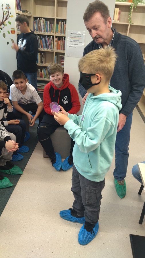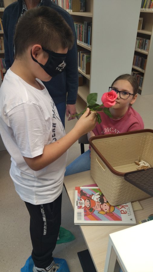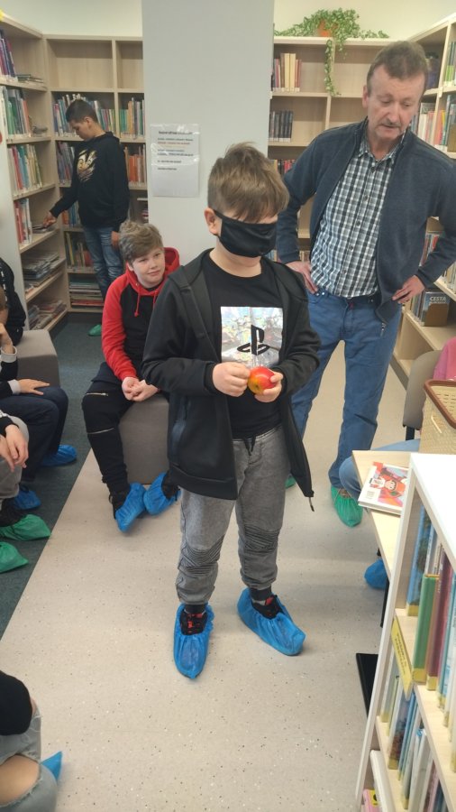Před několika dny jsme navštívili knihovnu v Morkovicích. S paní knihovnicí jsme si povídali o knihovně a o jejím chodu. Naučili jsme se, jak vyhledat knihy podle žánrů a autorů. Pak si pro nás paní knihovnice připravila soutež. V malém košíku byly pro nás nachystané různé předměty a my jsme se zavázanýma očima, podle hmatu museli uhodnout název dětské knihy. Byla to legrace pro všechny.