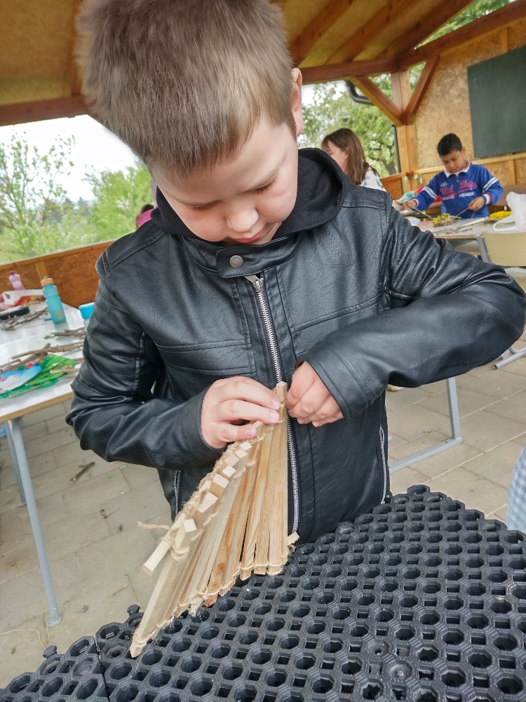 Žáci 3.B si v květnu užili při hodinách prvouky a pracovních činností stavbu voru z klacíků pomocí techniky vázání provazem. Motivací jim bylo následné pouštění vorů z břehů rybníka Ovčáčku. Sami si vymysleli, že na vor přivážou motouz, aby jim vor neuplaval. Někteří ho dle své libosti i pěkné ozdobili přírodninami. A co zjistili? Že vítr a plachta jsou pro plavidlo bez pohonu docela nezbytnou záležitostí: )