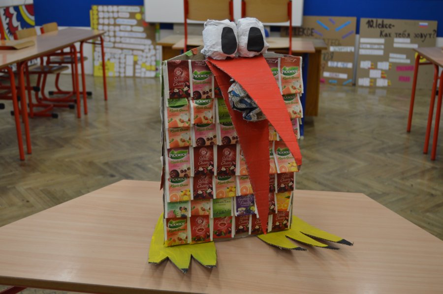 A tak vznikla tři díla, která se žákům opravdu povedla (posoudit můžete sami na níže vystavených fotografiích). Jeden tým tvořil Dan Marek, Dan Svoboda, Jan Pospíšil, Šimon Skopal, Vojtěch Kaňa a Tomáš Čech. Jejich koš je vyrobený z papírových trubiček. Každá strana má jinou kombinaci barev a k vidění jsou dvě vlajky (Česká republika a EU) a logo naší školy. Druhý tým vytvořil Kuba Seemann a Kuba Kuchařík. Svůj výtvor pojmenovali jako Opeřenec recyklovatelný, neboť opravdu připomíná svým zjevem opeřeného ptáka. K jeho výrobě použili kartony, papír a především velké množství obalů od čajů. Samostatně pak na koši pracoval Standa Vysloužil, jehož Papírožrout s širokým úsměvem dokonce dokáže otevřít pusu.