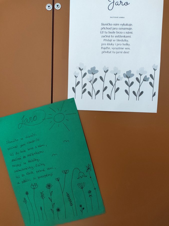Jaro je v plném proudu, venku za oknem to tak ještě nevypadá, ale ve školním klubu vše voní a kvete. Paní Zima se mám převlékla, ze dveří zmizel sobík a přiběhla slečna žirafa, ledové básničky nám krásně rozkvetly a provoněly celou chodbu. I přírodovědná výzva se žákům převážně pátých ročníku moc povedla.