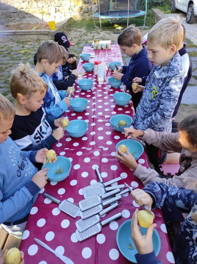 Naše výprava trvala pět dnů, během kterých jsme si vyzkoušeli různá řemesla. Například jsme si vyzkoušeli řemeslo pana hlináře, kdy jsme si z hlíny a barev vytvářeli obrázky. Zahráli jsme si i na pana brašnáře a vyrobili jsme si přívěšek z kůže. Řemeslo pana pekaře nás bavilo nejvíce, protože jsme si připravili a opekli bramborové placičky na ohni. Ty byly naprosto výborné a moc nám chutnaly! Mňam! Poprvé jsme se setkali i s výrobou másla, což bylo pro některé z nás oříšek. Další řemeslo, které jsme si vyzkoušeli, byla výroba bezových korálů. Během naší výpravy jsme se vydali i na farmu, kde jsme viděli zvířátka a pan farmář nám ukázal, jak se o ně starat a pečovat.