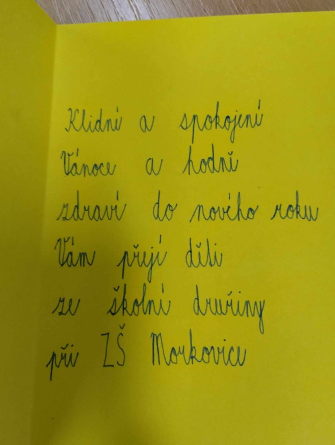 Prosinec se nesl v duchu Vánoc. Navštívil nás Mikuláš se svou družinou, přinesl každému adventní kalendář a kupodivu si čert nikoho neodnesl. První oddělení s paní vychovatelkou vyrábělo přáníčka a sladký dárek pro potěchu obyvatelů domova v Pačlavicích. Druhé oddělení si vyrazilo užít první sněhovou nadílku. Děti také malovaly, tvořily a vánočně zdobily třídy.