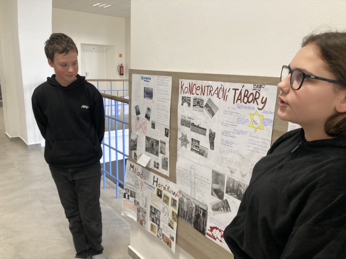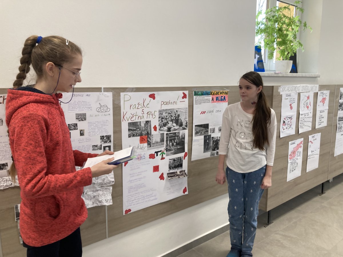 Skončilo 1. pololetí a s ním i naše vlativědné učivo o moderních dějinách naší země. Zakončili jsme ho projektem. Ve skupinách jsme si vybrali to, co nás zajímalo – např. Koncentrační tábory, Vypálení Lidic a Ležáků, Partyzánská skupina Olga, Osud Milady Horákové, Pražské jaro 1968 a upálení Jana Palacha... Pak jsme si vyhledali k danému tématu informace, obrázky a zpracovali vše do plakátů. Nejvíc jsme se těšili, ale také obávali prezentace, která se nám nakonec všem povedla. V rámci slohu nás taky bavilo psát dopis významné osobnosti našich dějin. Už jsme prostě páťáci a né hlupáci:)