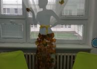 Naše paní oblékla podzimní šaty a ze šišek jsme vyrobili zvířátka z lesa (veverky a medvědy). Děti z vyšších ročníků malovaly výkresy s podzimní tématikou dle své fantazie.
