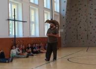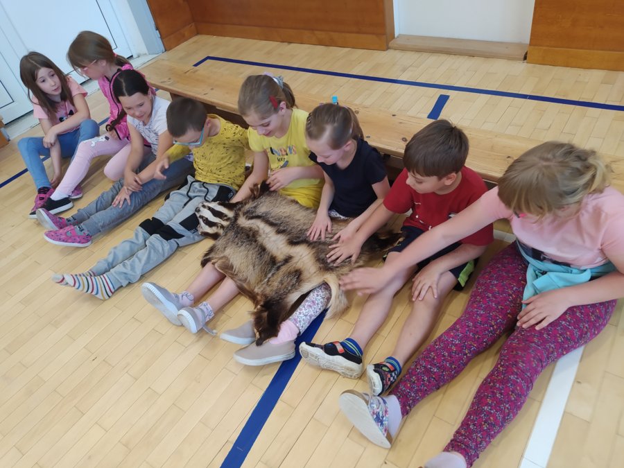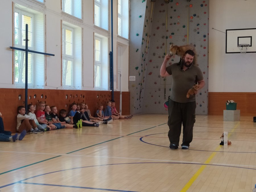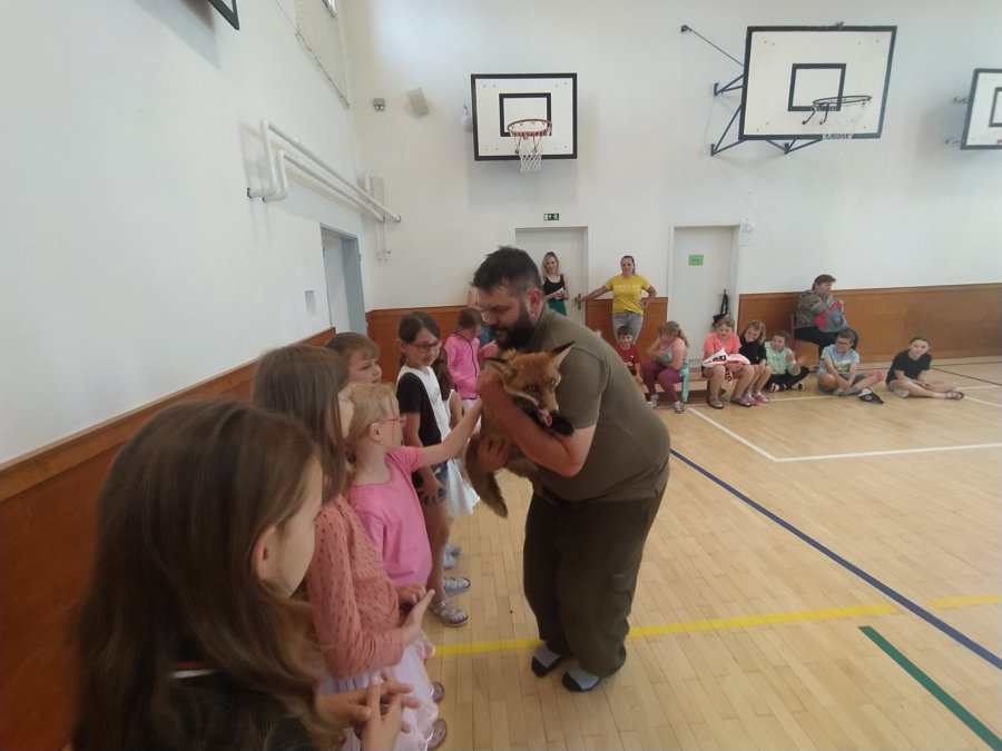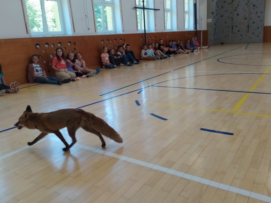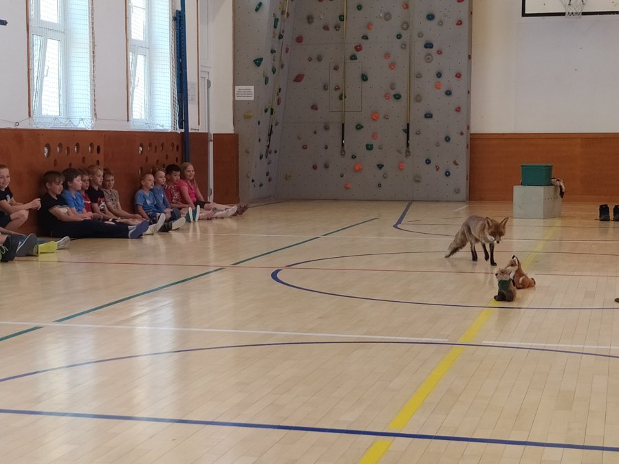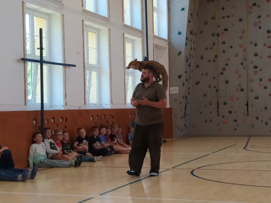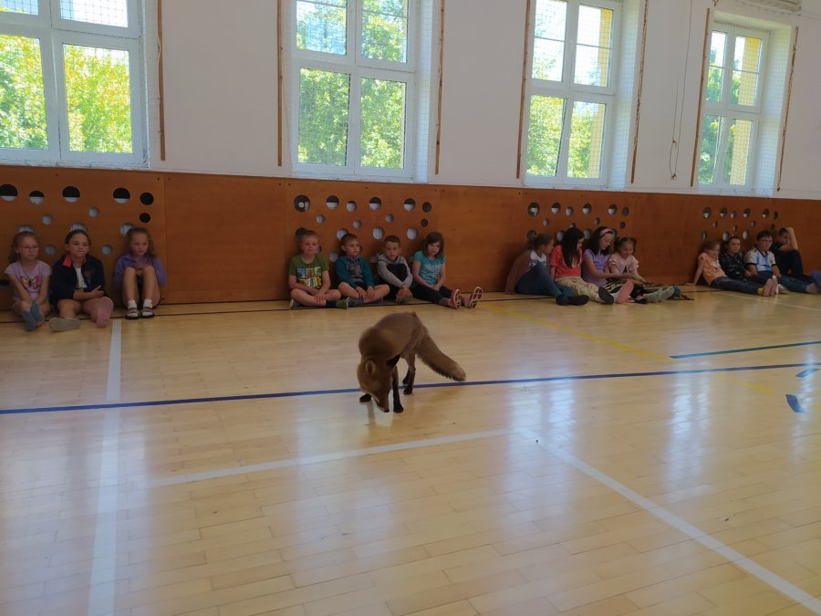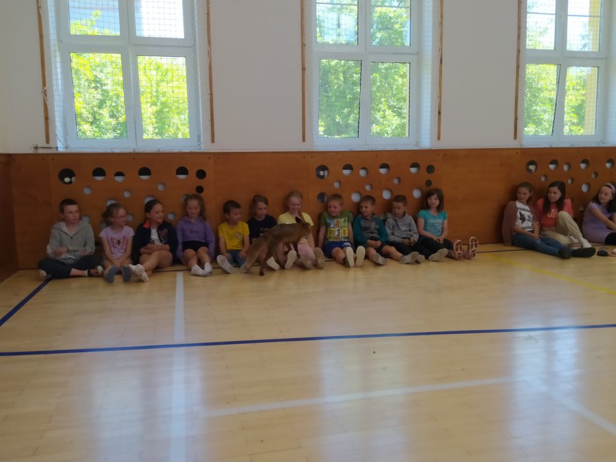 V úterý 14. května jsme se sešli v tělocvičně a netrpělivě čekali na pana myslivce, který s sebou přivezl ochočenou lišku se jménem Coco. Nejdříve nám pan myslivec pověděl o lišce spoustu informací, zatímco liška čekala ve své přepravce. Poté liška Coco vyběhla mezi děti a zvědavě pobíhala po tělocvičně. My jsme si tak mohli Coco pořádně prohlédnout a nakonec i pohladit.