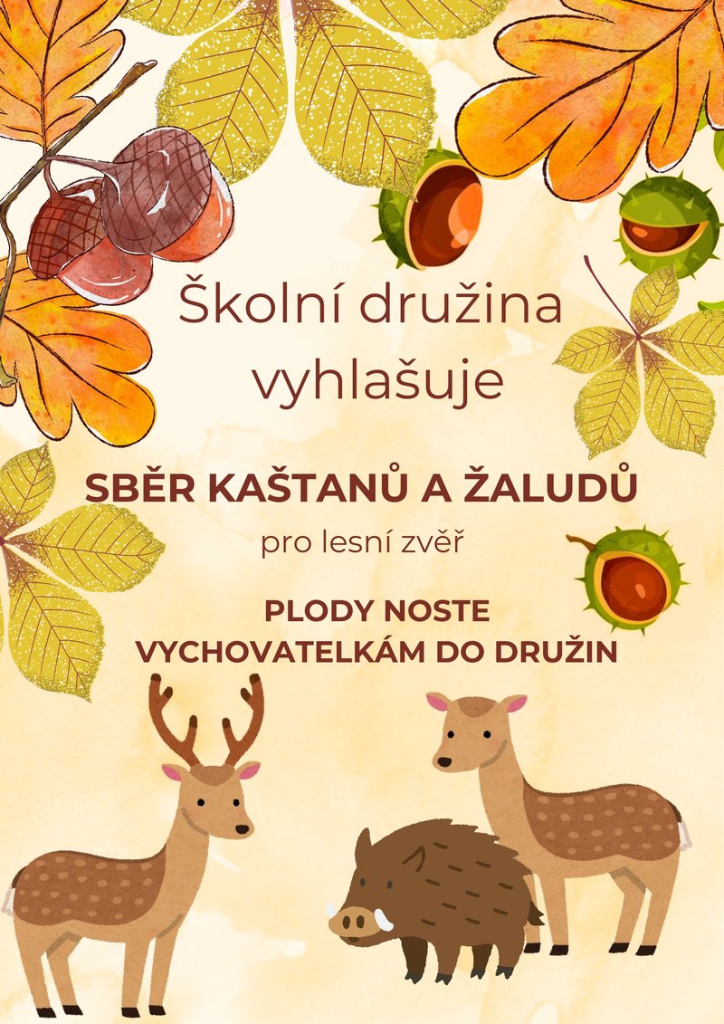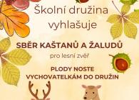 Školní družina vyhlašuje sběr kaštanů a žaludů pro lesní zvěř.