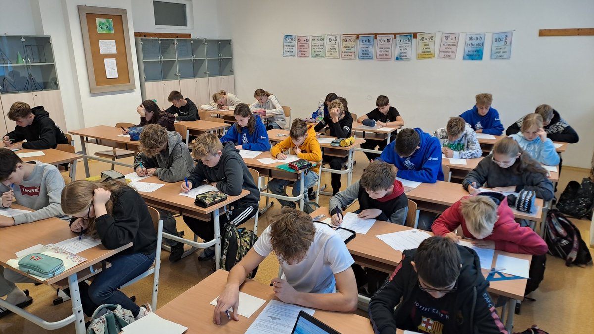 I v letošním školním roce poměřili žáci 6. až 9. tříd své matematické znalosti, dovednosti a schopnosti v soutěži Pythagoriáda. Z celkového počtu 26 účastníků byl tím úspěšným sice pouze jeden, ale nevadí. Oceňujeme všechny zúčastněné žáky a žákyně za jejich aktivitu a odhodlání pokořit zapeklité matematické úlohy. A abychom nezapomněli, tím úspěšným řešitelem je Daniel Tesař ze třídy 6.A. Daniel naši školu reprezentoval v okresním kole této matematické soutěže, kde se umístil na 4. místě. Blahopřejeme.